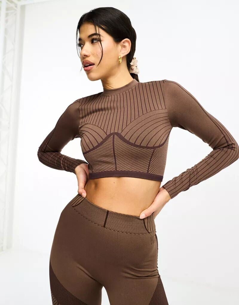 Бесшовный топ HIIT в рубчик с длинными рукавами