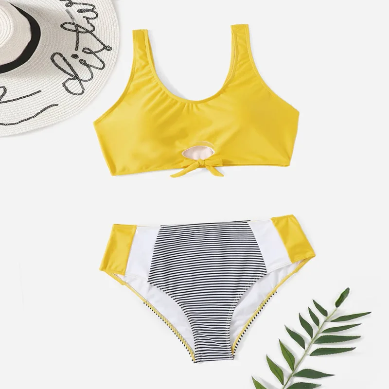Бикини из двух частей с разрезом и высокой талией с европейскими и американскими купальниками