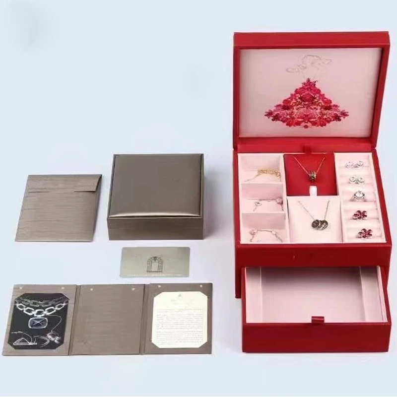 Фирменные украшения, обручальное кольцо, красная коробка, подарочная упаковка, роскошный органайзер, серьги, браслет, ожерелье, держатель, п...