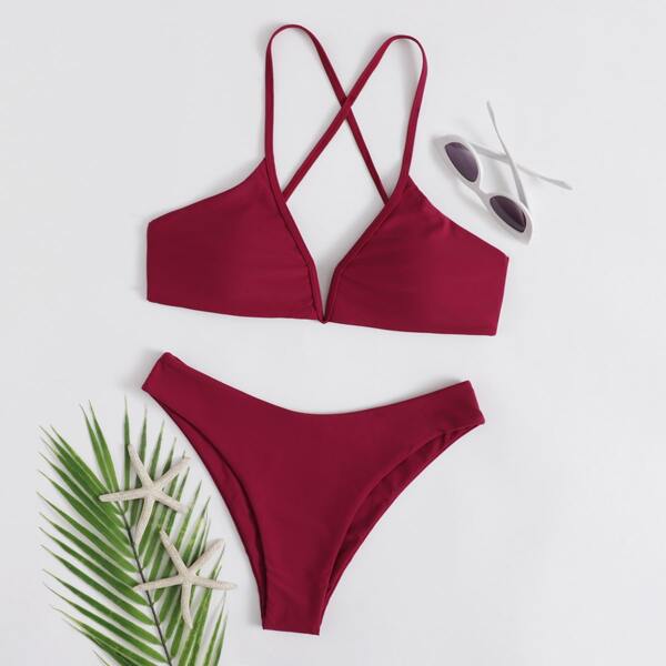 Бургундия милый Нейлон Одноцветный Высокий Эластичный Бикини, size features are:Bust: ,Length: ,Sleeve Length: