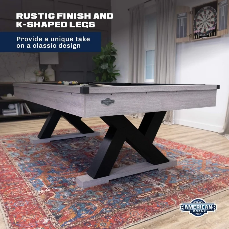Бильярдный стол American Legend Kirkwood 90 дюймов с деревенской отделкой, ножки K-образной формы и черная ткань, коричневый