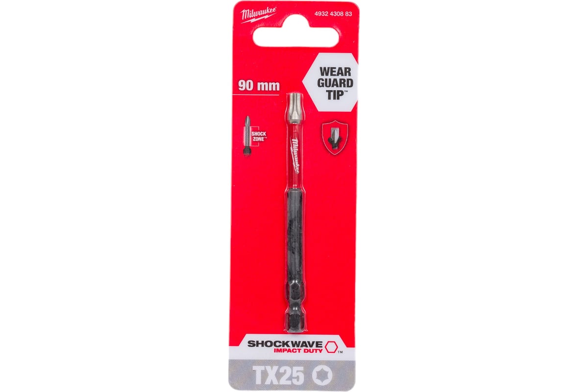 Бита односторонняя Milwaukee Shockwave TX25, 90 мм, 1/4 (тип Е), ударная, 1 шт. (4932430883)