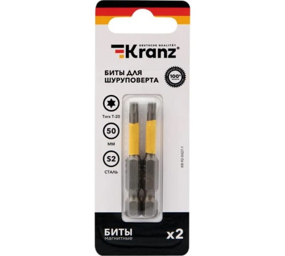 Бита KRANZ T20, 50мм, 1/4 (тип Е), магнитная, 2шт. (KR-92-0427-1)