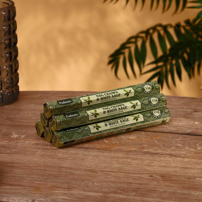 Благовония NAG CHAMPA "Tulasi" 15 аромапалочек Белый шалфей