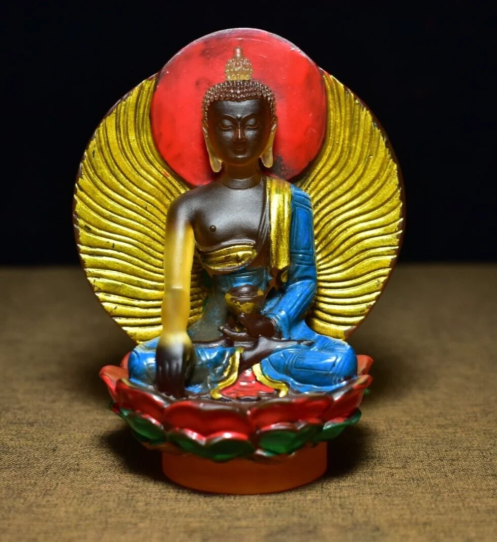 Благородная Цветная глазурь вырезанная Sakyamuni краска с Золотой подсветкой статуя Будды Медицины