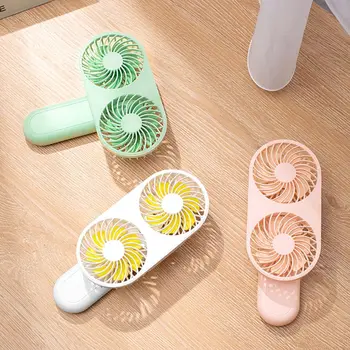 Creative Design Dual Head 3 Speed Adjustable Mini Handheld Fan Portable USB Rechargeable Cooling Fan Desktop Air Cooler