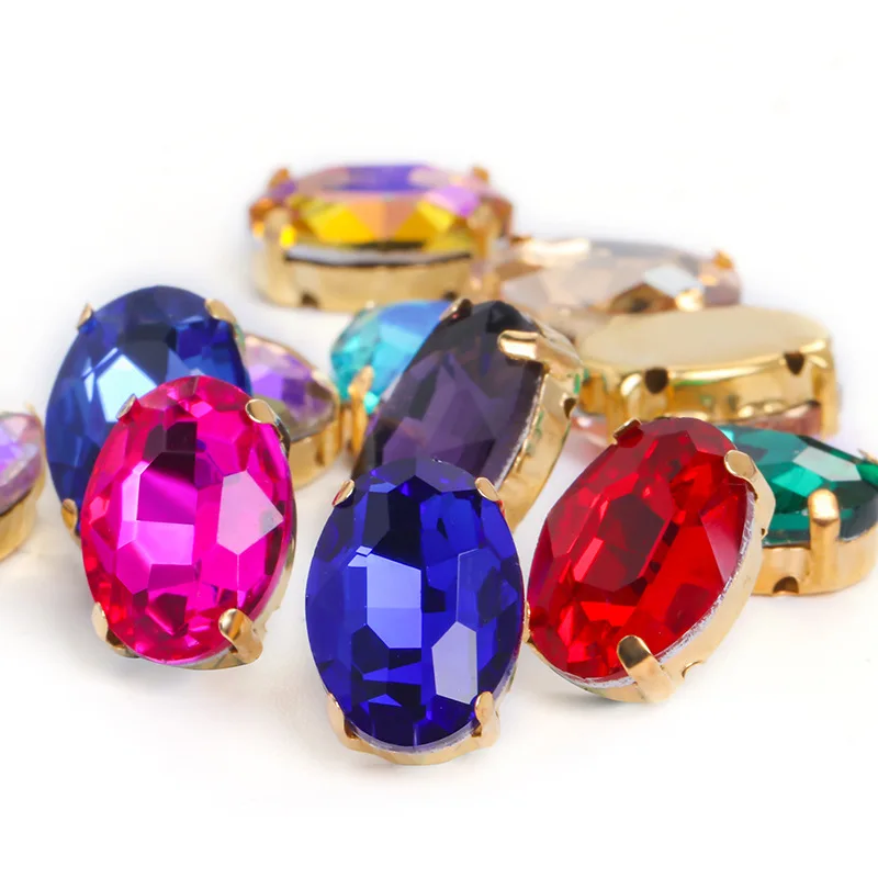 Factory Direct Sales Oval Shape 23 Color Crystal Glass Stone Rhinestones With Gold Claw DIY Jewelry Making Nail