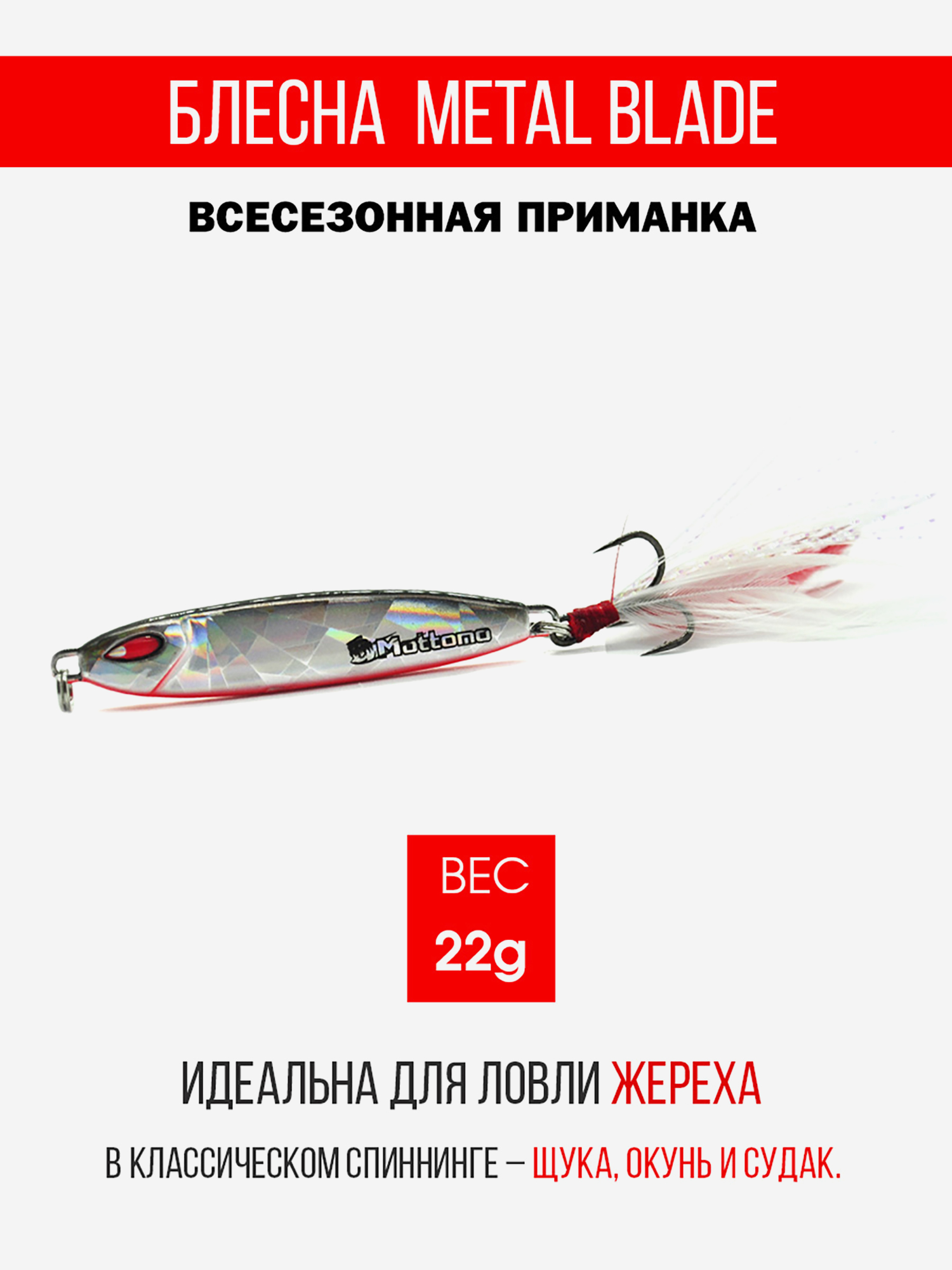 Блесна колеблющаяся для рыбалки Mottomo Metal Blade 22g 06. Пилькер колебалка на жереха, щуку, окуня, голавля, форель, судака, сома, Серебряный