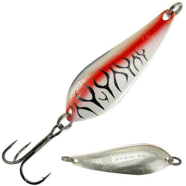 Популярная блесна RB (Русская блесна) Атом ‒ это отличная находка для рыбаков, предпочитающих экспериментировать и «охотиться» за разными видами пресноводных хищников. С помощью данной приманки удается рассчитывать на поимку окуня, щуки, жереха, сома, судака и даже может посчастливиться выловить лосось. Это легендарная приманка, о которой наслышан каждый опытный рыболов. Впервые блесна попала в продажу еще во времена Хрущева, а потому имеет 60-летнюю историю своего усовершенствования. Огромная популярность приманки обусловлена великолепной игрой, благодаря которой ей практически нет равных. Блесна RB (Русская блесна) Атом характеризуется наличием стабильной и уверенной игры под водой. В продаже можно встретить приманки весом 13 г, 18 г и 26 г. Она завлекает подводных хищников своими колебаниями. Такие реалистичные телодвижения напоминают поведение настоящей небольшой рыбки, которая является излюбленным лакомством большинства пресноводных хищников. Приманка укомплектована острым металлическим тройником и отличается многообразием цветовых оттенков на выбор.