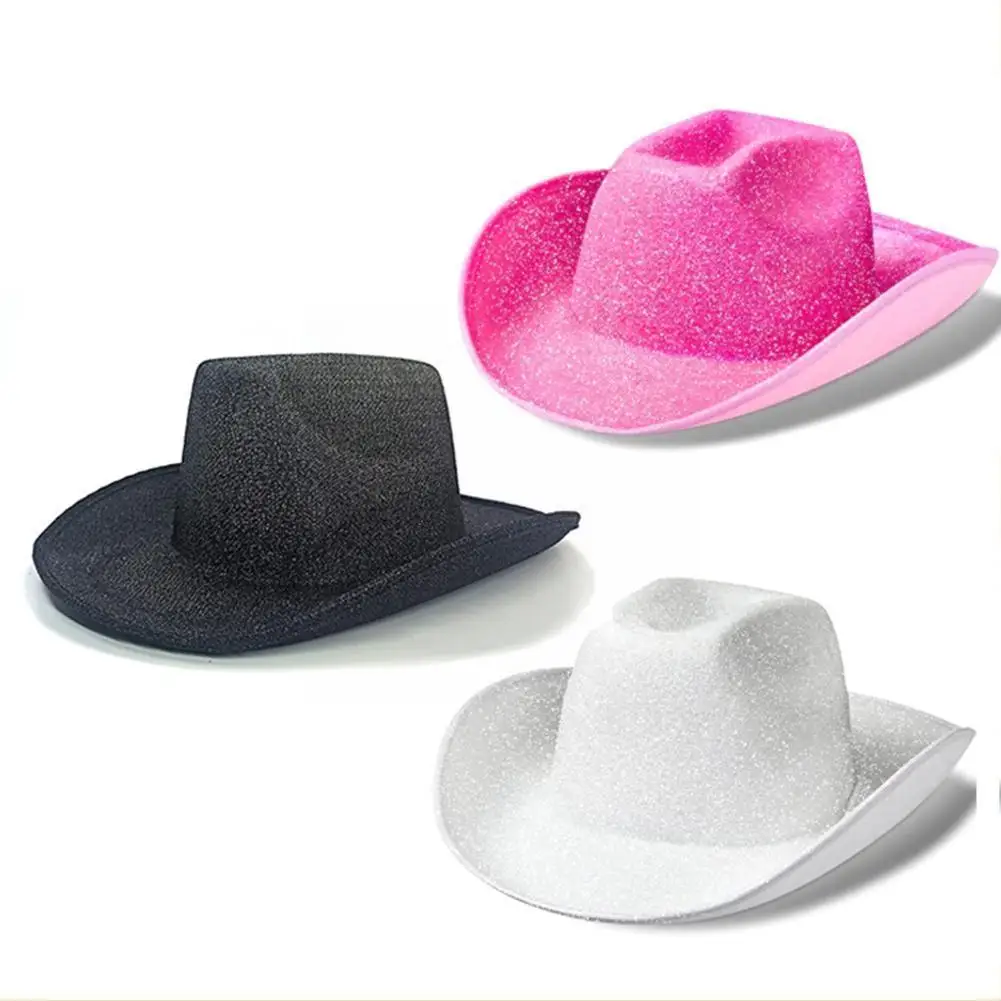 Блестящая ковбойская шляпа, модная шляпа с широкими полями в стиле ретро, ковбойская клейкая шляпа для одежды, аксессуары для девичника, реквизит, женская шляпа Y6C0