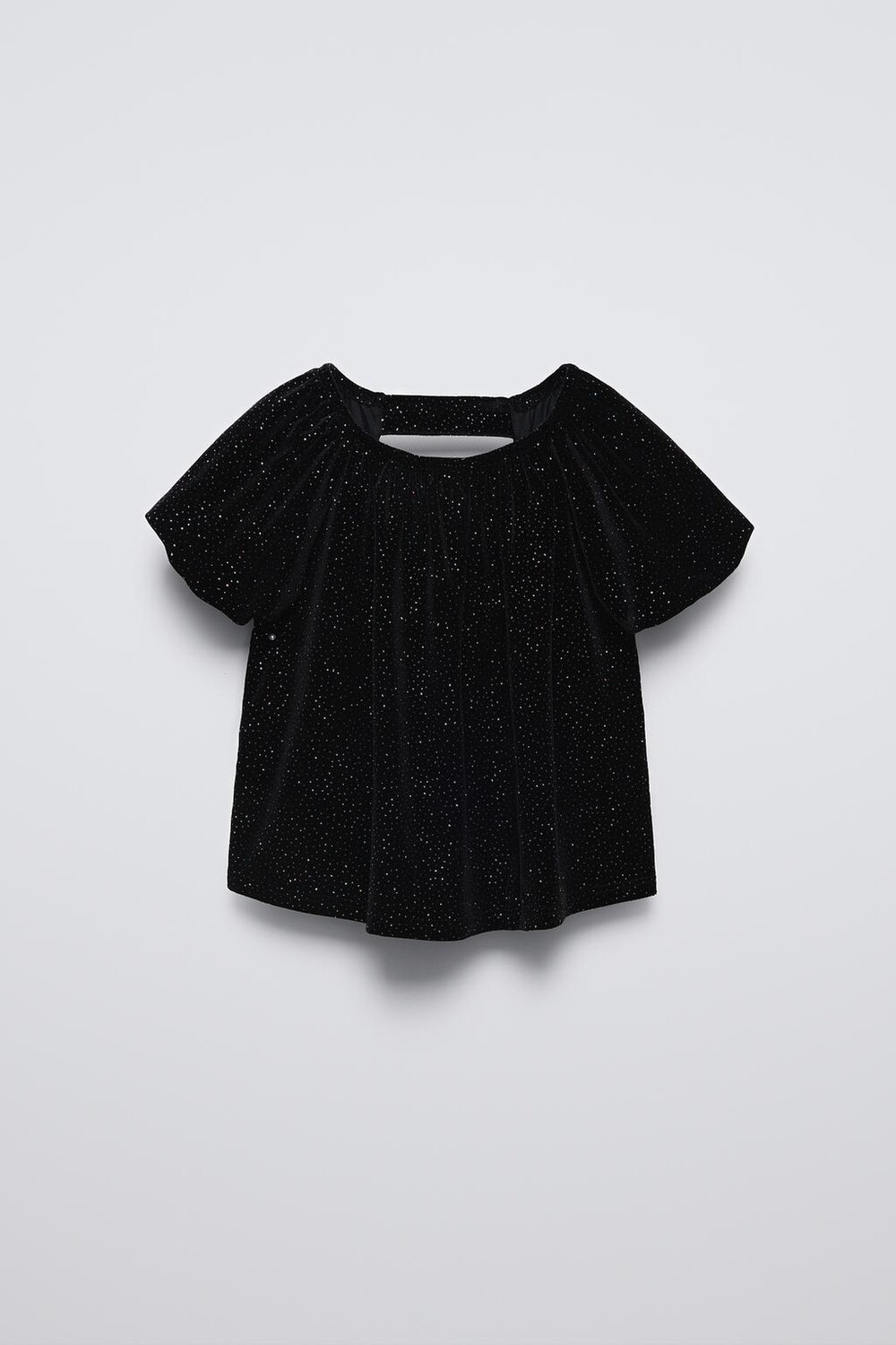 Блестящая футболка из бархата ZARA, черный