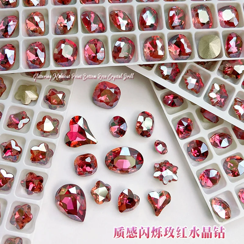 Блестящие искусственные кристаллы, розово-красные кристаллы, украшение для ногтей, сердце, геометрические Стразы, металлические аксессуар...