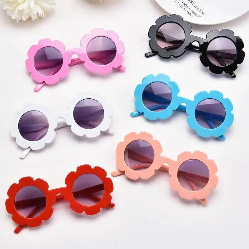 Блестящие солнцезащитные очки в круглой оправе с цветами, детские очки в круглой оправе, милые маленькие солнцезащитные очки для лица из ПК