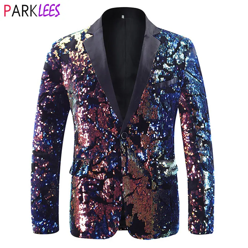 Блестящий блейзер с блестками, мужская куртка на одной пуговице, пиковый костюм с отворотом для выпускного, мужской блейзер для сцены, певиц...