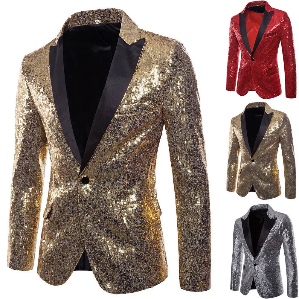 Блестящий блейзер с золотыми блестками, украшенный блестками, мужской пиджак для ночного клуба, выпускного вечера, мужской костюм, Homme, одежда для сцены для певцов