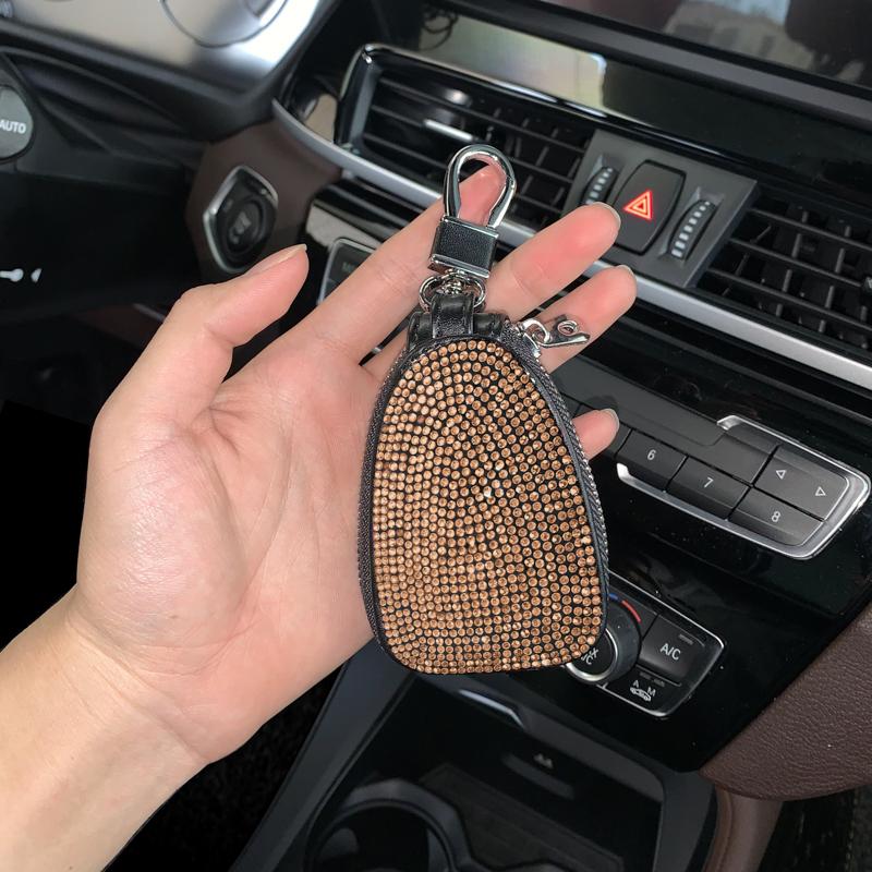 Блестящий брелок для ключей с бриллиантами и кристаллами, чехол для хранения ключей, чехол для ключей, кошелек, блестящий автомобильный декор, автомобильные аксессуары для женщин и девочек шампанского