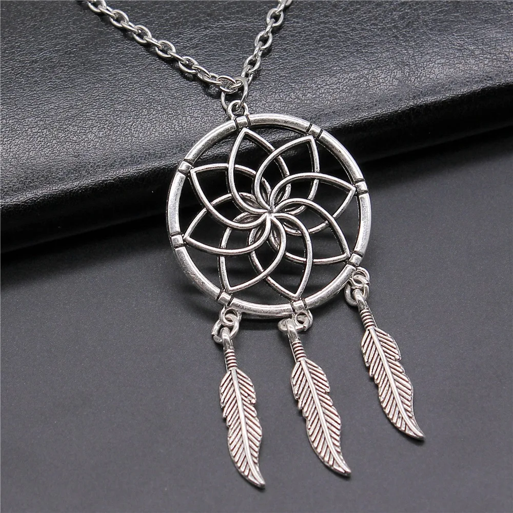 Fashion Vintage Antique Silver Color 35x71mm Dreamcatcher Pendant Necklace For Women Men Long Chain Trendy Jewelry Accessories