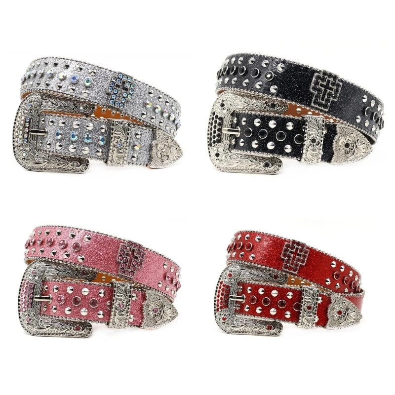Блестящий пояс, джинсовый пояс с заклепками в стиле панк, пояс с заклепками, пояс с крестом, украшенный драгоценными камнями,