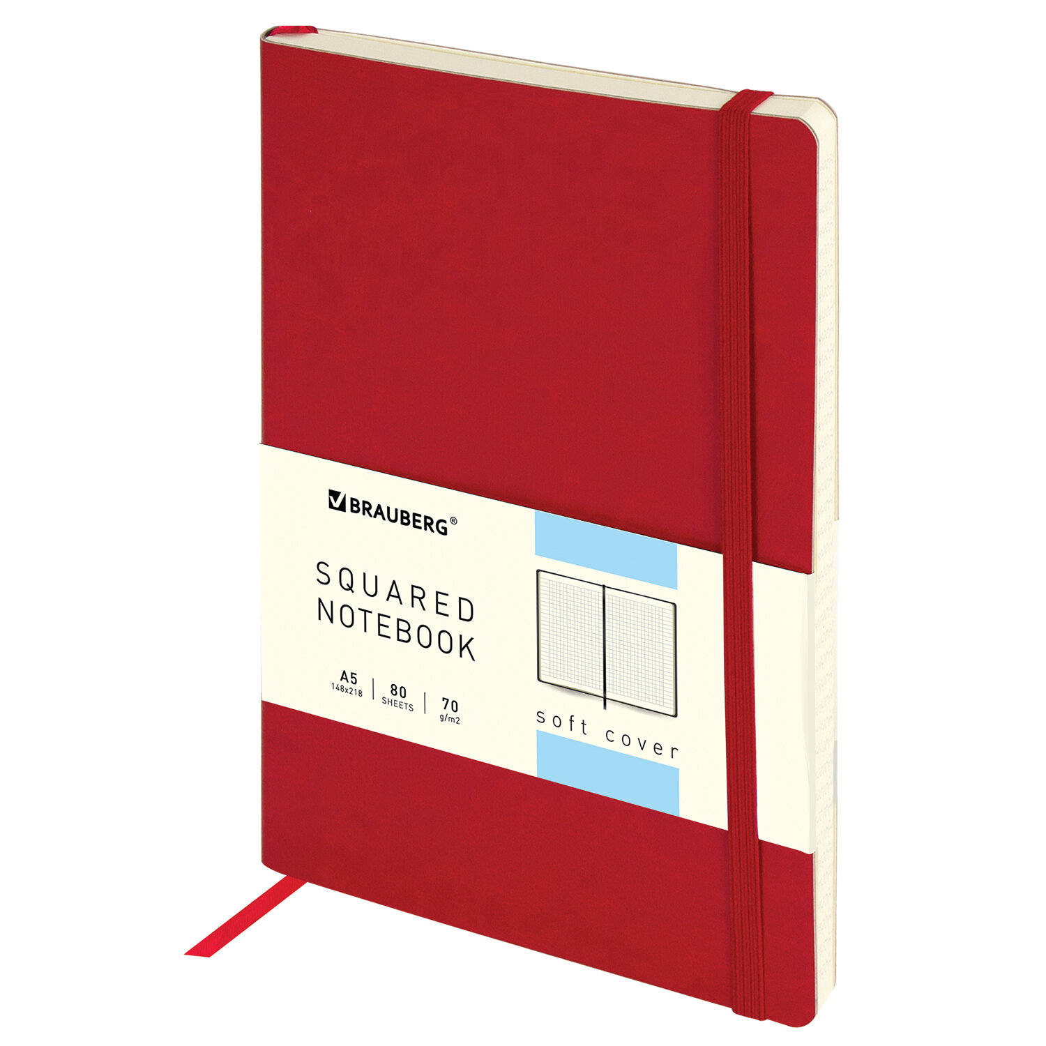 Блокнот BRAUBERG Metropolis Ultra, A5, клетка, 80 листов, красный (111018)