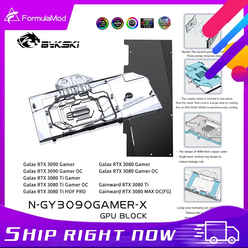 Блок водяного охлаждения Bykski 3090 3080 GPU для геймеров GALAX GeForce RTX 3090/3080, охлаждение жидкости для видеокарты