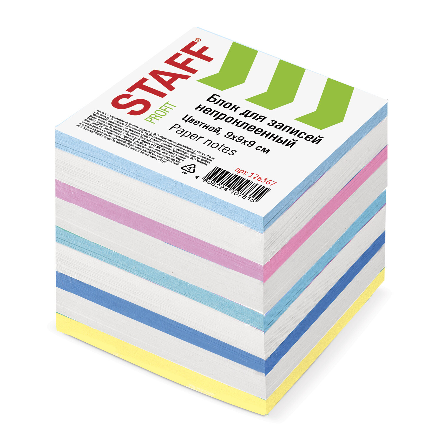 Блок для записей Staff непроклеенный, 9x9x9см, цветной (126367)
