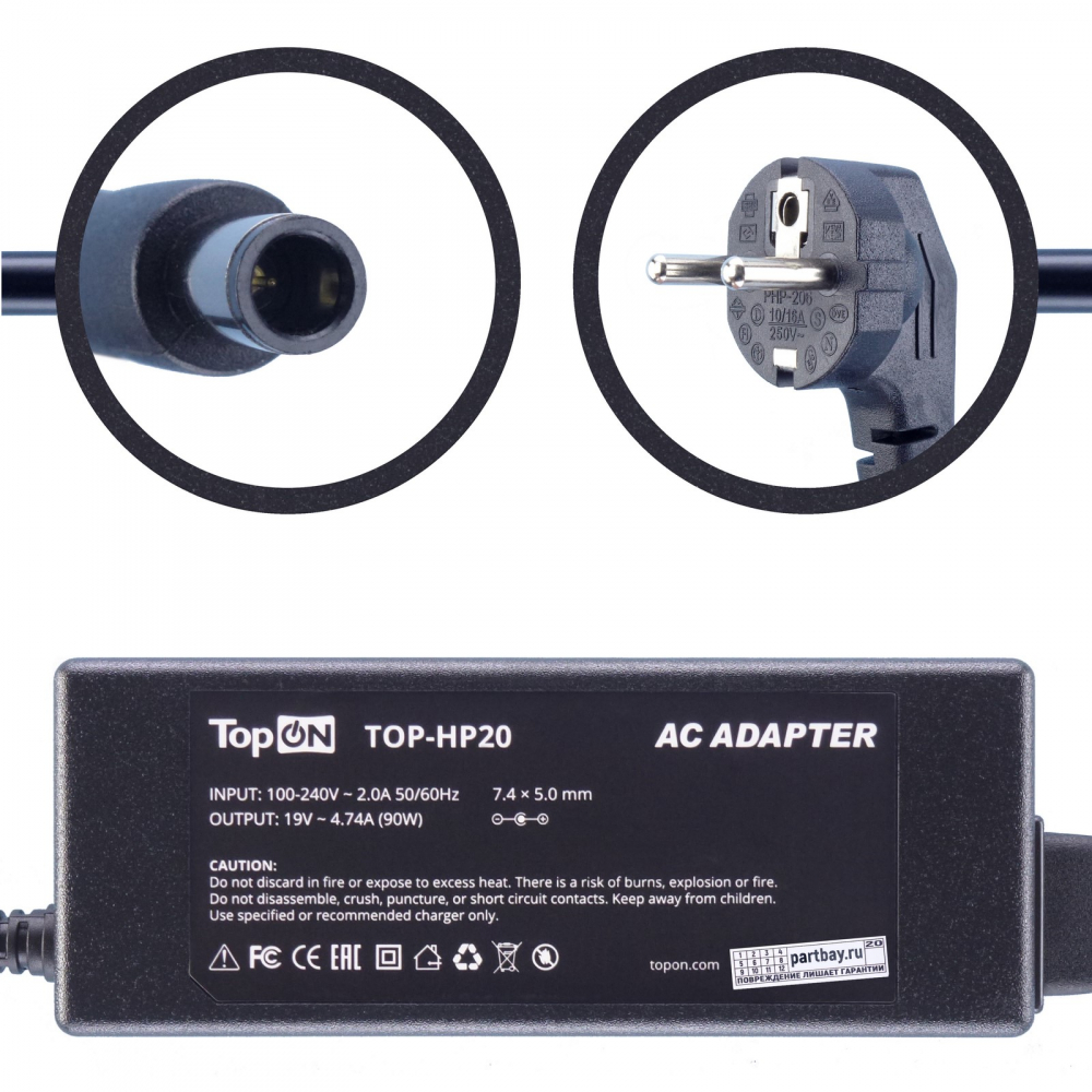 Блок питания для HP Pavilion G7-1000 19V 4.74A 7.4x5.0mm 90W TopON, Черный