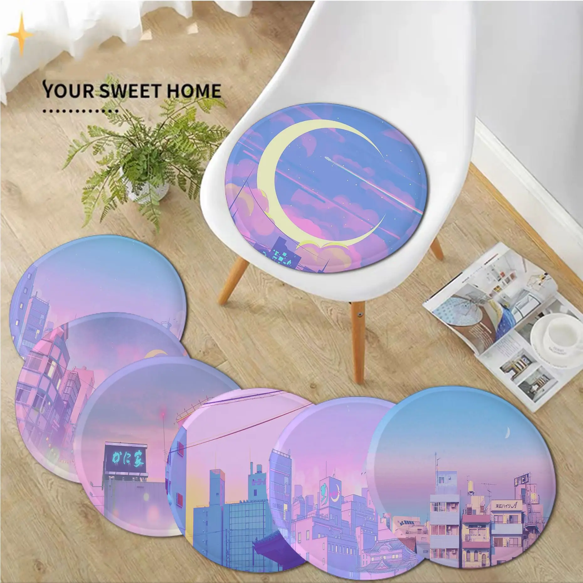 Pink Anime Moon landscape Aesthetics Multi-Color Chair Cushion Soft Office Car Seat Comfort Breathable 40x40cm Buttocks Pad