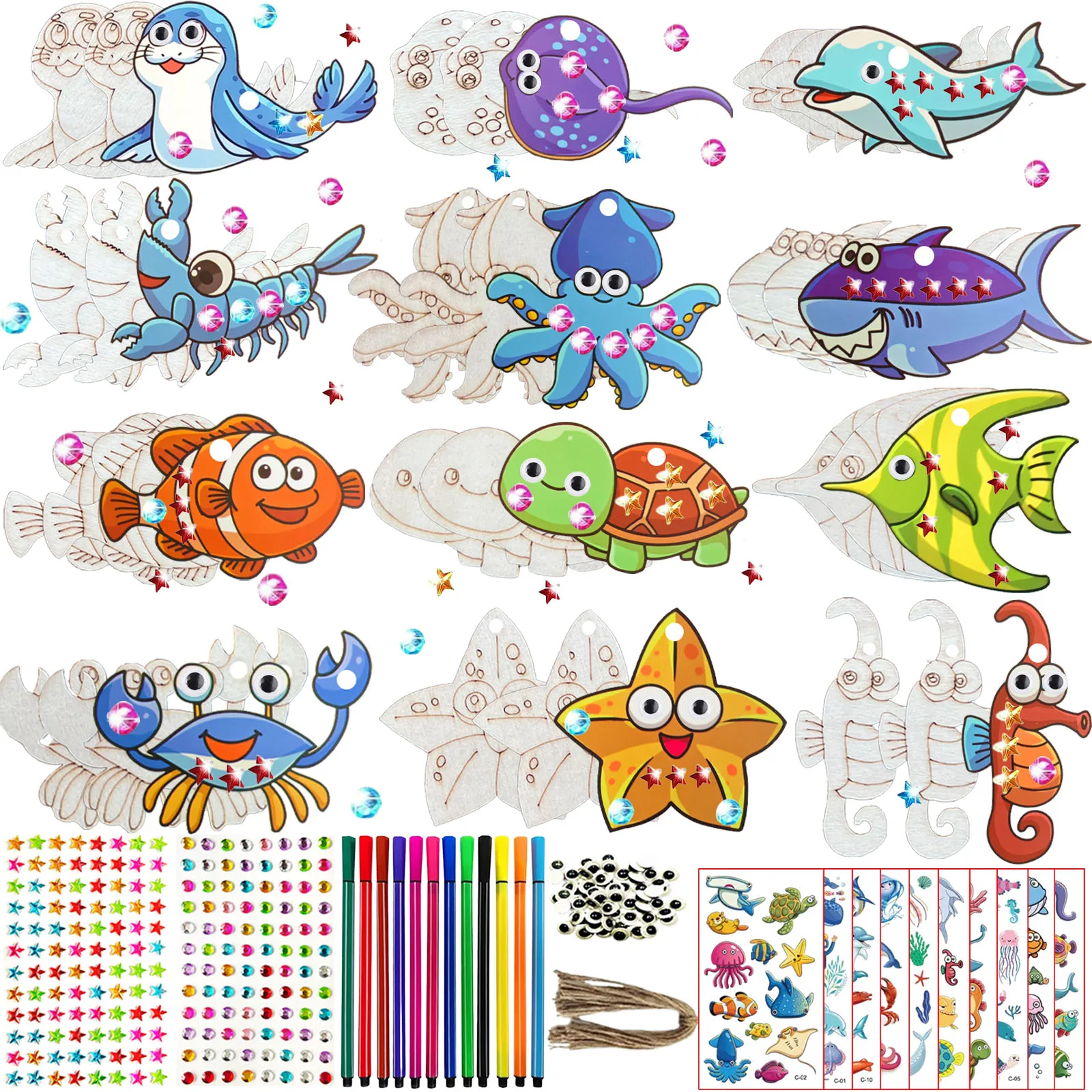 284 шт. деревянный набор для рукоделия на тему морских животных, набор для рукоделия «сделай сам», красочные деревянные поделки, поделки для дня рождения