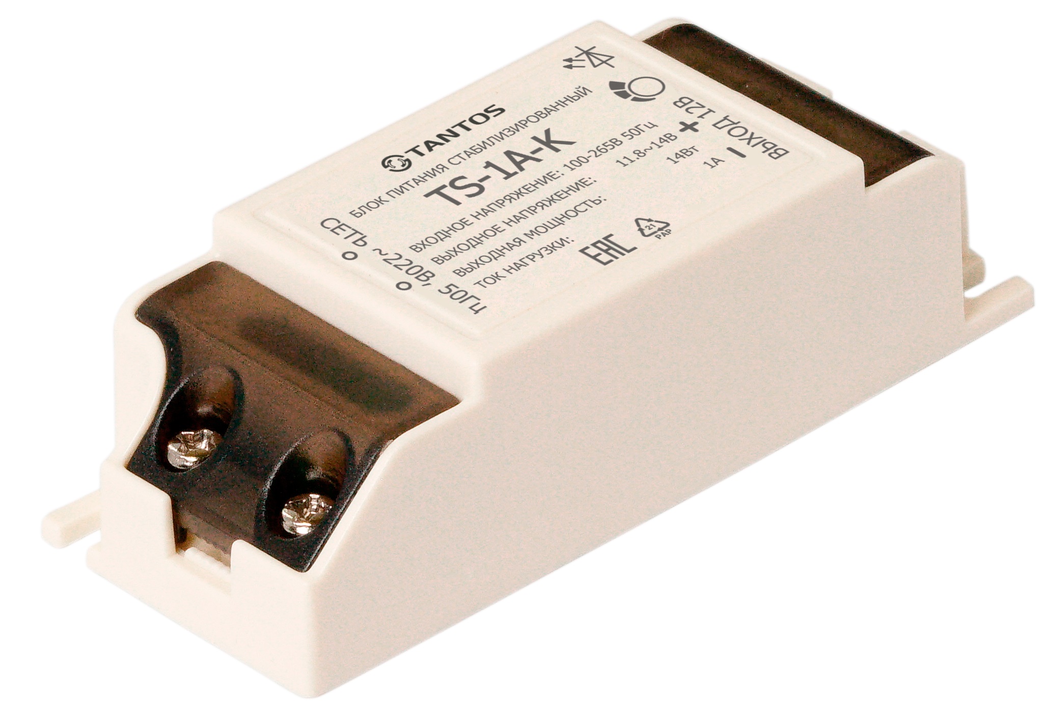 Блок питания Tantos TS-1A-K стабилизированный, 12В; 1А; 100-265В 50Гц, пластиковый корпус, TS-1A-K