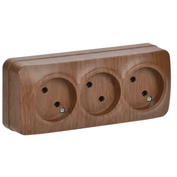 Блок розеток IEK GLORY РС23-2-ХД, открытый монтаж, 3-х постовая/модулей: 1, 10A, в сборе, IP20, дуб (ERH30-K24-10), РС23-2-ХД