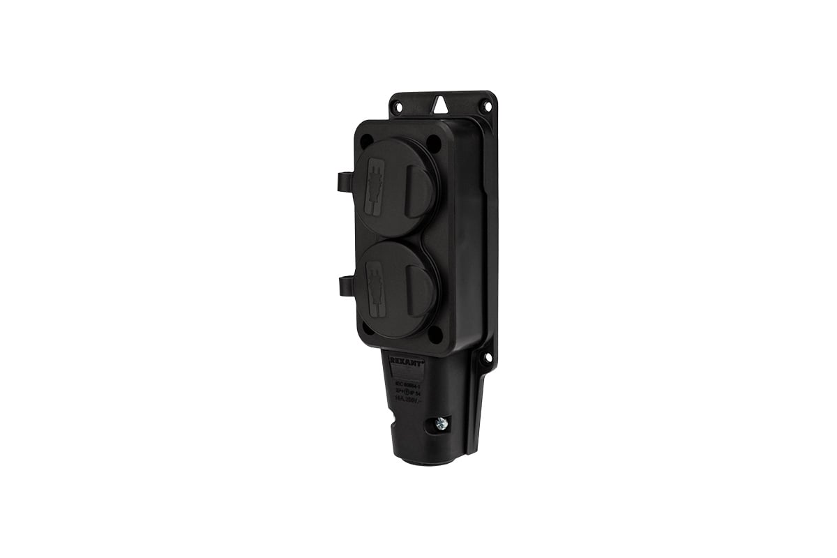 Блок розеток Rexant, переносная, 2-х постовая, с з/к, с крышкой, 16А, в сборе, IP54, 2P+PE, черный, 1 шт. (111-112)