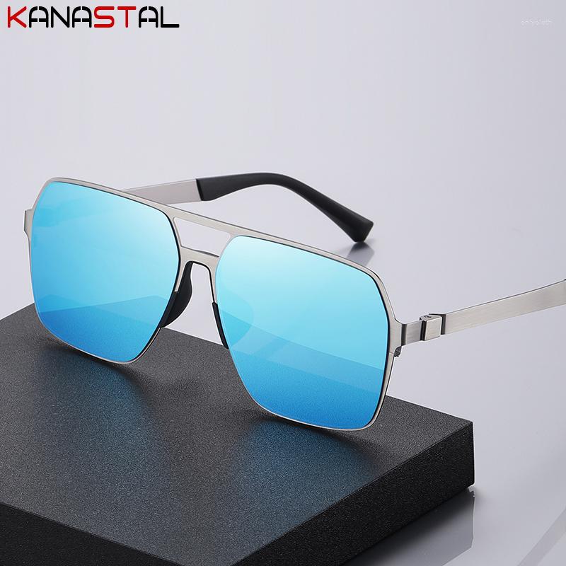 Sunglasses Men's Polarized UV400 Fashion Sun Glasses Metal Square Eyeglasses Frame Sunscreen Fishing Travel Male Visor Eyewear