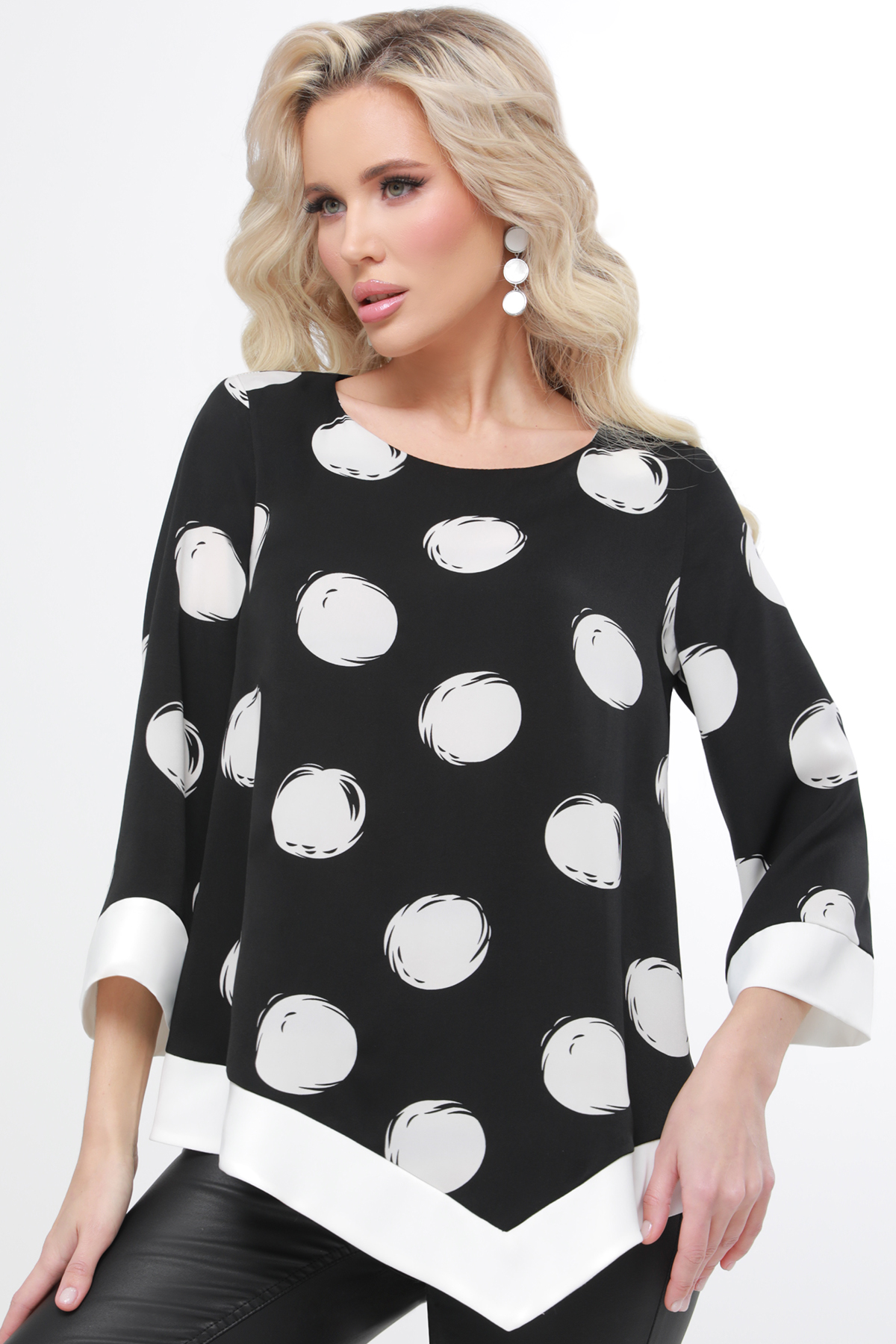 Стильный дизайн. Черный цвет и лаконичный крой делают блузу универсальной, позволяя сочетать ее с различными предметами одежды.