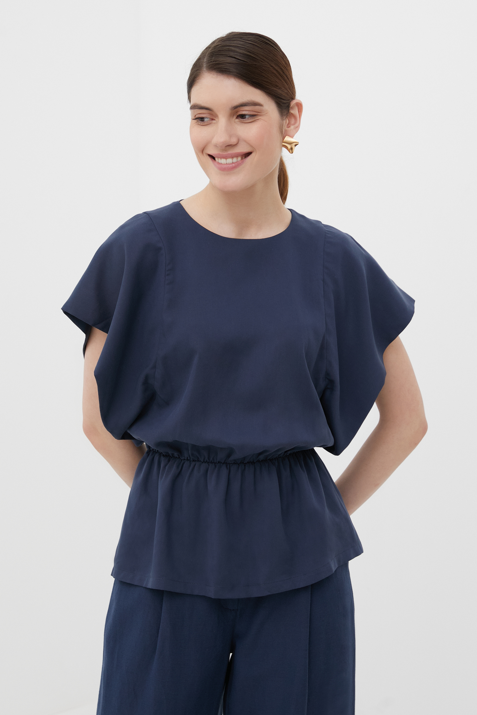 Блуза женская Finn Flare FSC110166 синяя L, Синий, FSC110166