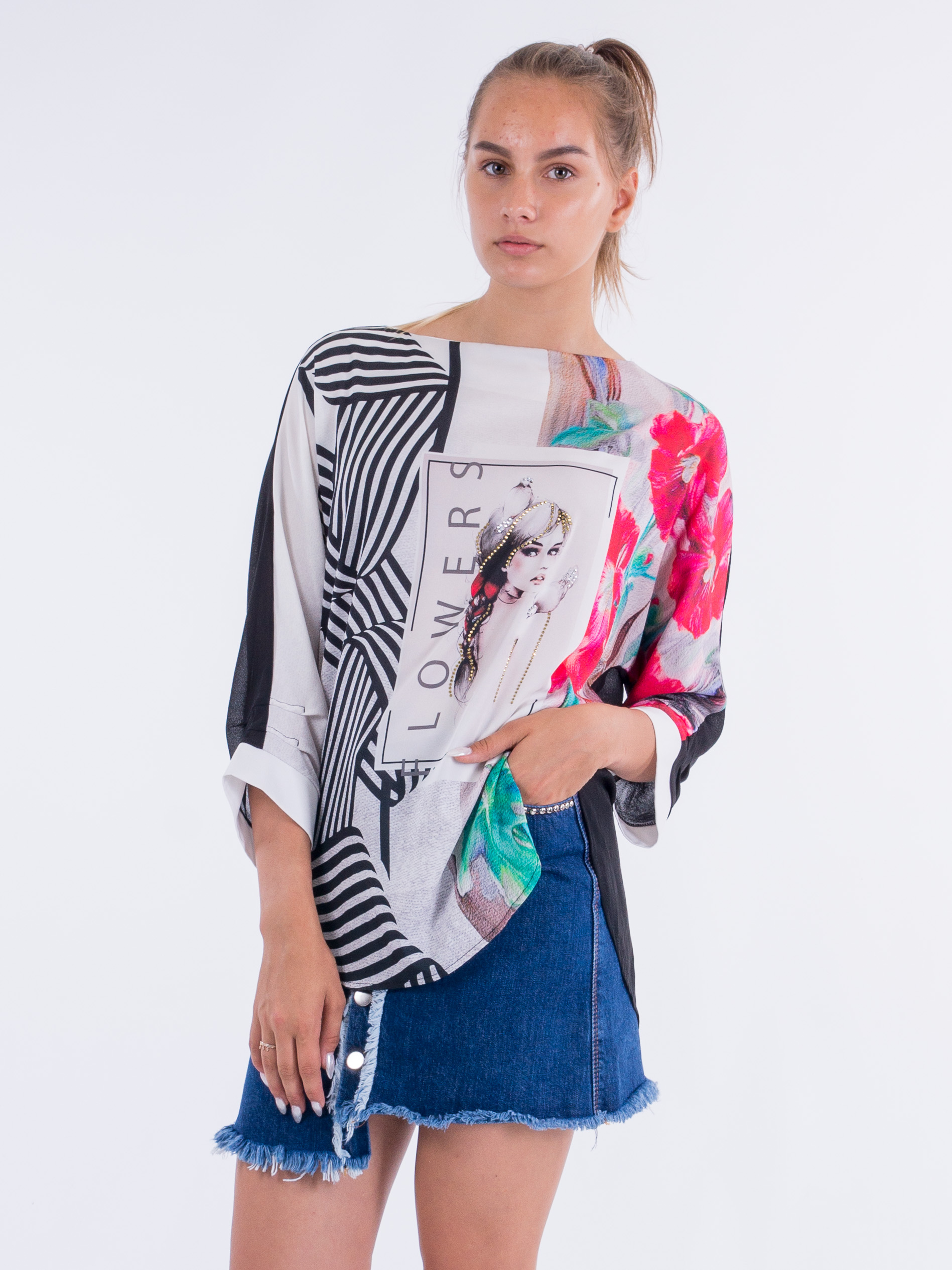 [html]100% полиестер.Стильная блуза с принтом по всему изделию.[/html]