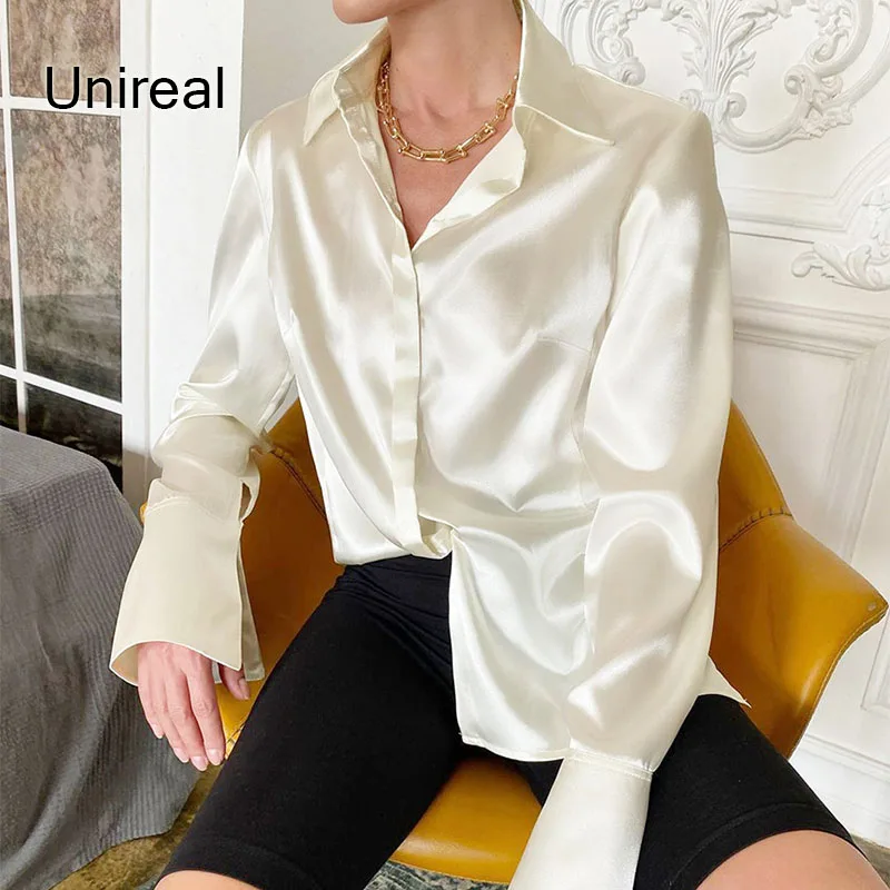 Блузка Женская атласная с длинным рукавом, свободного покроя