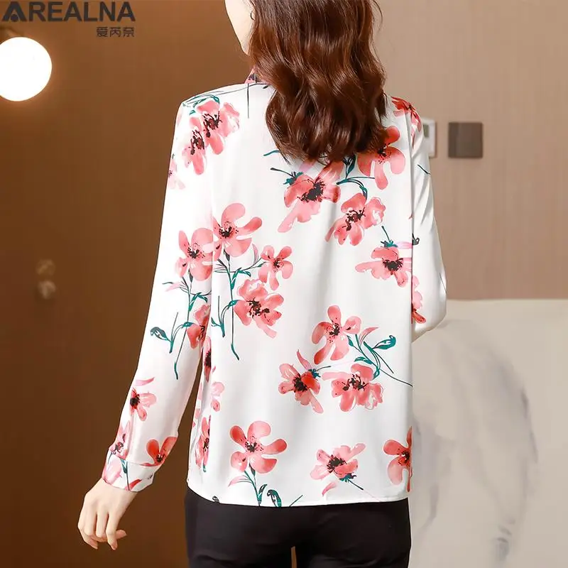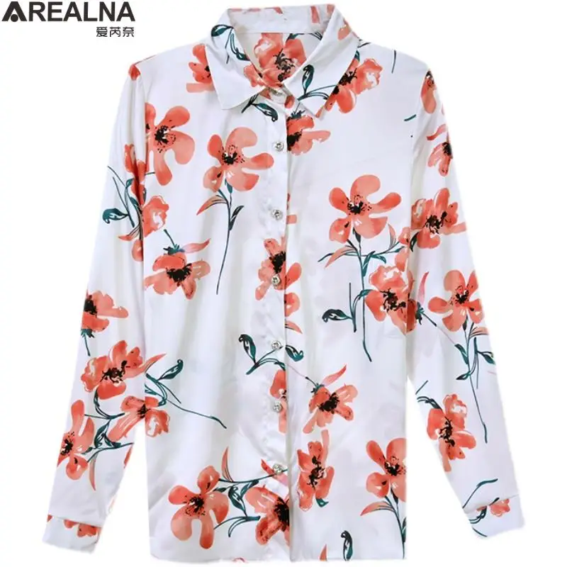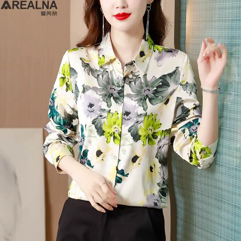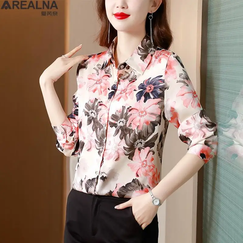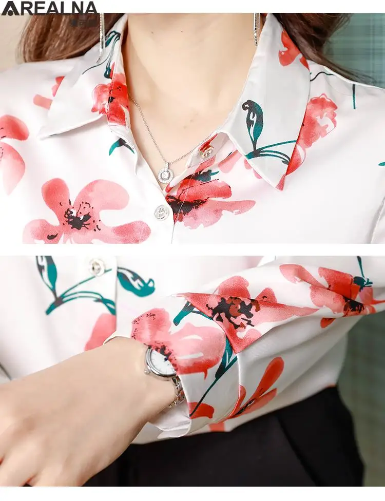 Блузка Женская атласная с длинным рукавом и цветочным принтом, 2022