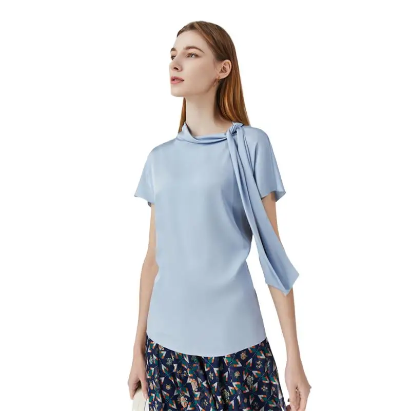 Блузка Женская атласная с коротким рукавом и круглым вырезом, 10 цветов