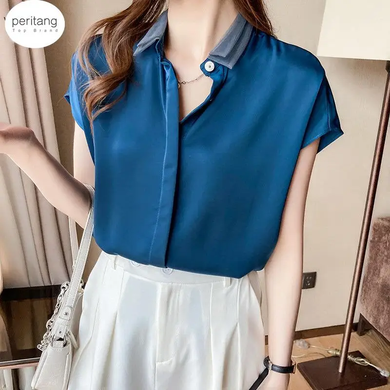 Блузка Женская атласная с коротким рукавом и V-образным вырезом
