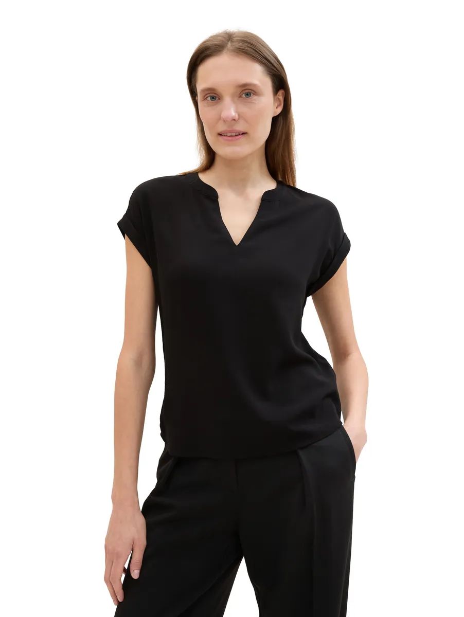 Блузка без шнуровки TOM TAILOR с V-образным вырезом, черный