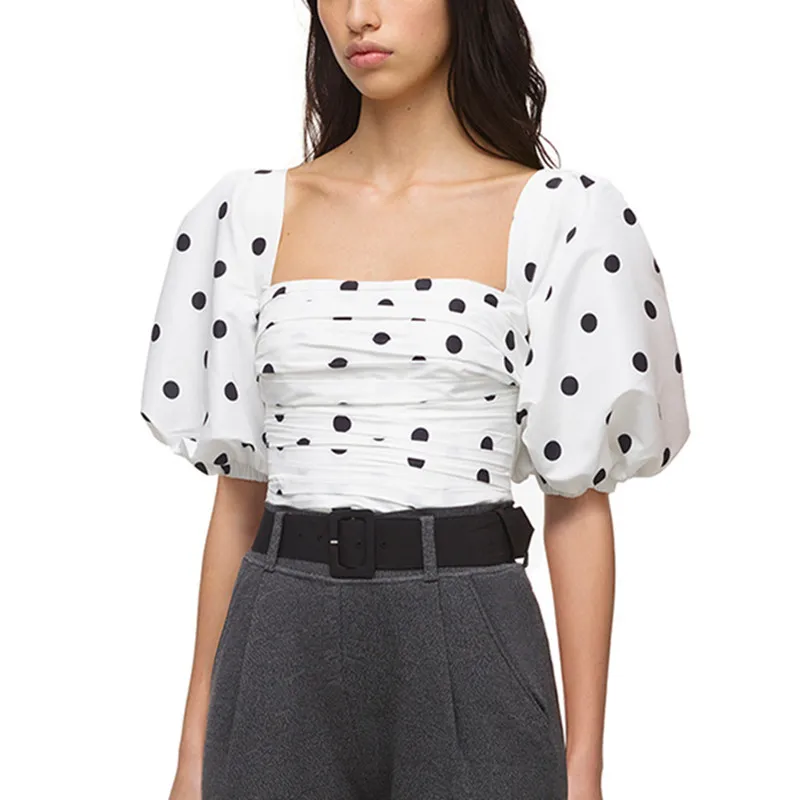 Блузка женская в горошек, плиссированная, с пышными рукавами и квадратным вырезом, на молнии, с открытой спиной, лето 2021