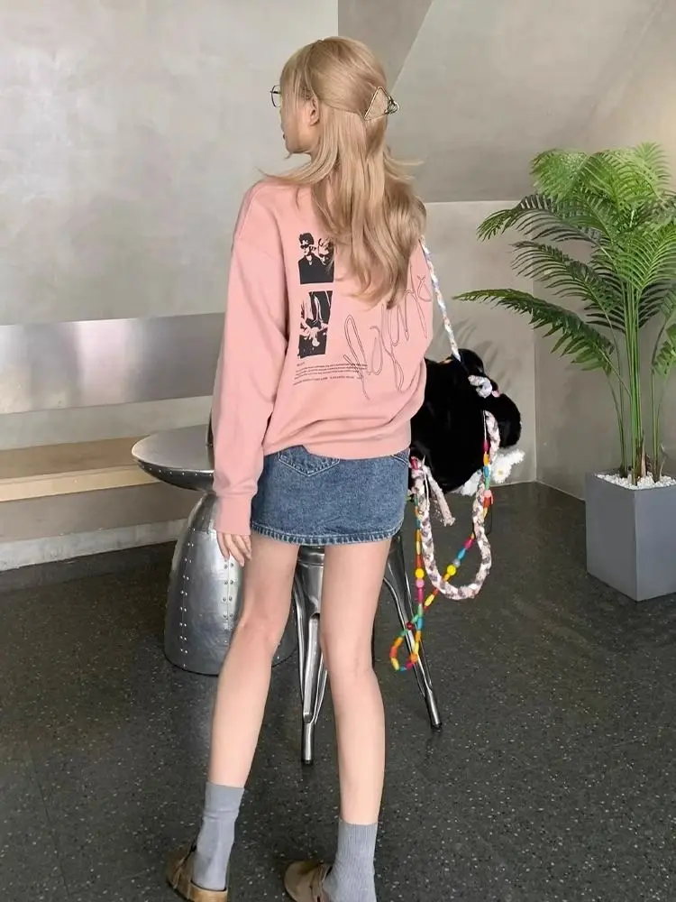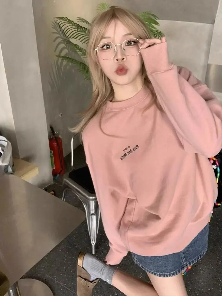 Блузка женская оверсайз с длинным рукавом и надписью в Корейском стиле