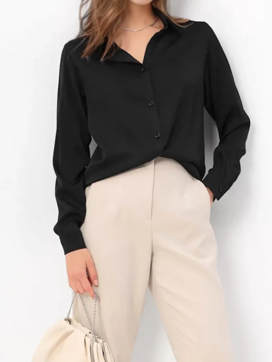 Блузка женская однотонная атласная с длинным рукавом, повседневная однобортная элегантная рубашка с воротником с лацканами, весна 2024