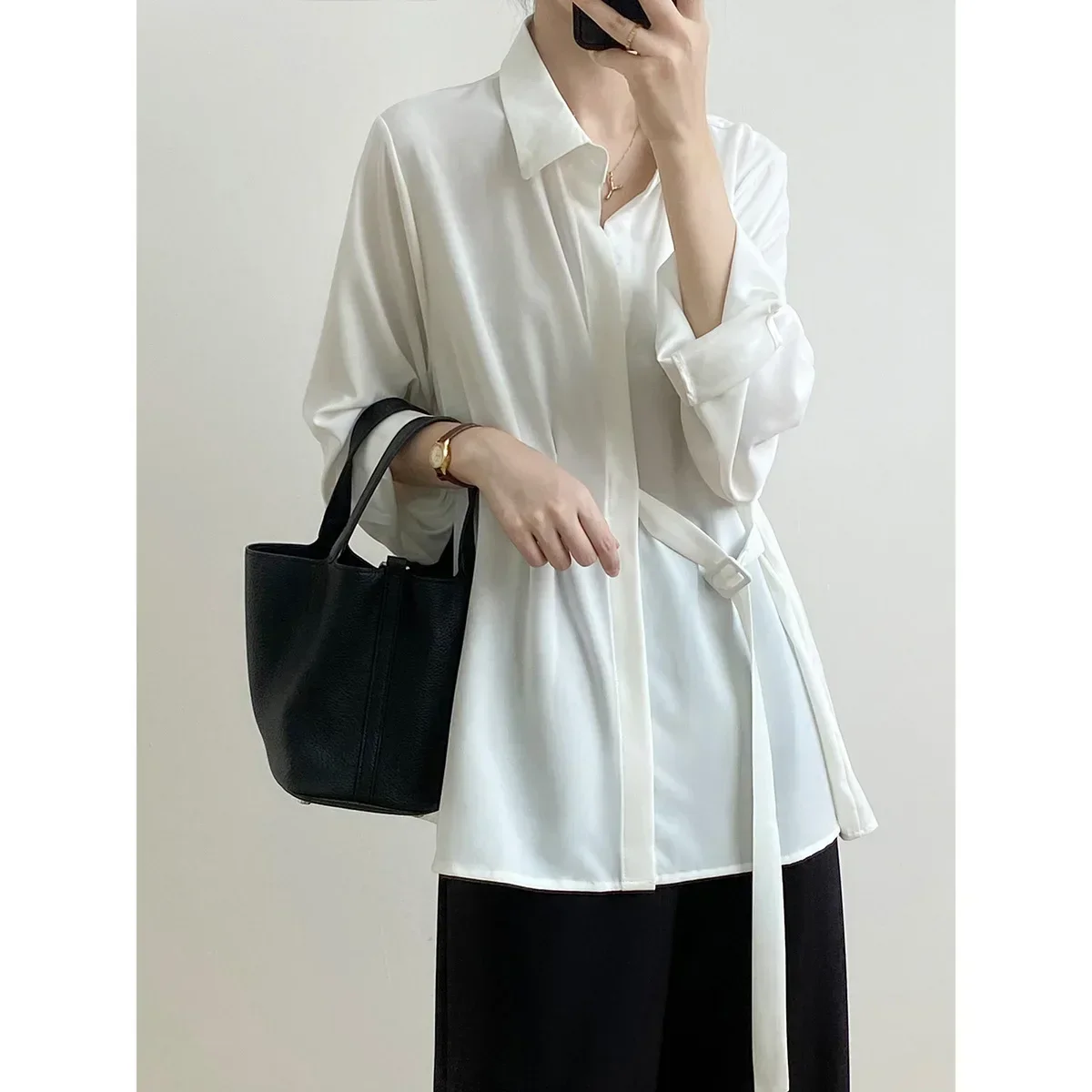 Блузка женская свободного покроя с длинным рукавом, на весну и осень