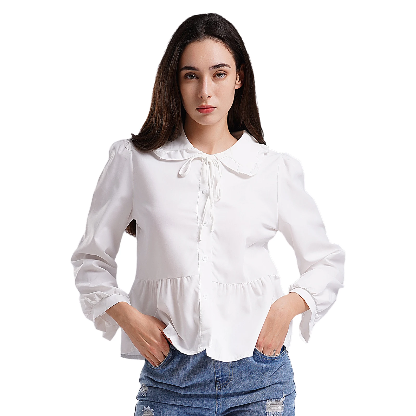 Блузка женская с оборками и отложным воротником, милая рубашка с длинным рукавом, Повседневная Уличная одежда, белый цвет, для девушек