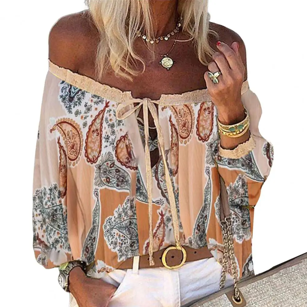 Блузка женская шифоновая с открытыми плечами, рюшами и длинным рукавом-фонариком