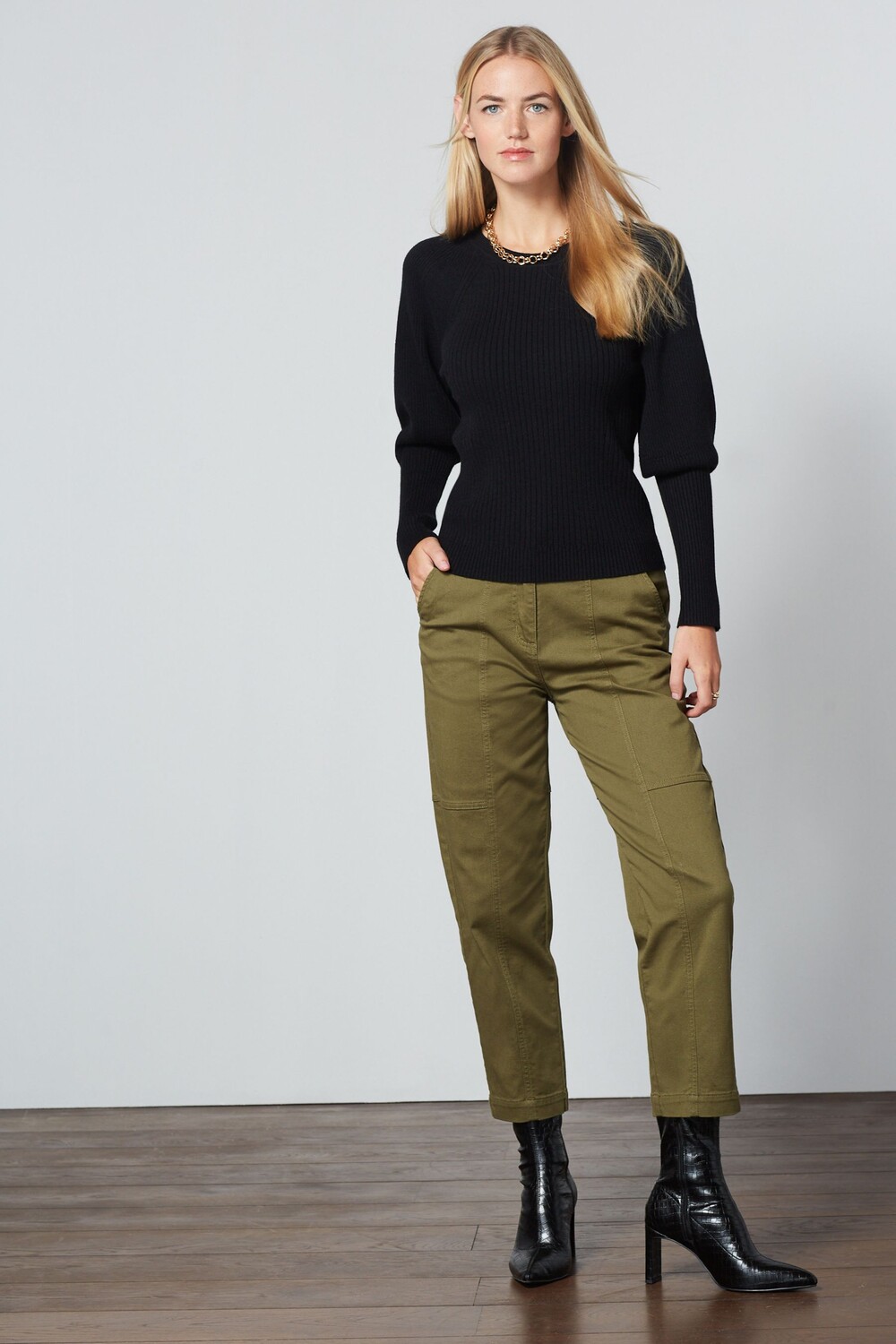 Блузка из рубчатой вязки с рукавами-буфами Next, черный