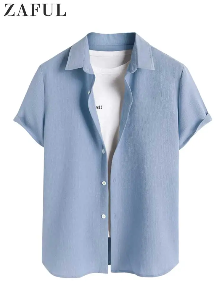 Блузка мужская однотонная текстурированная на пуговицах с коротким рукавом