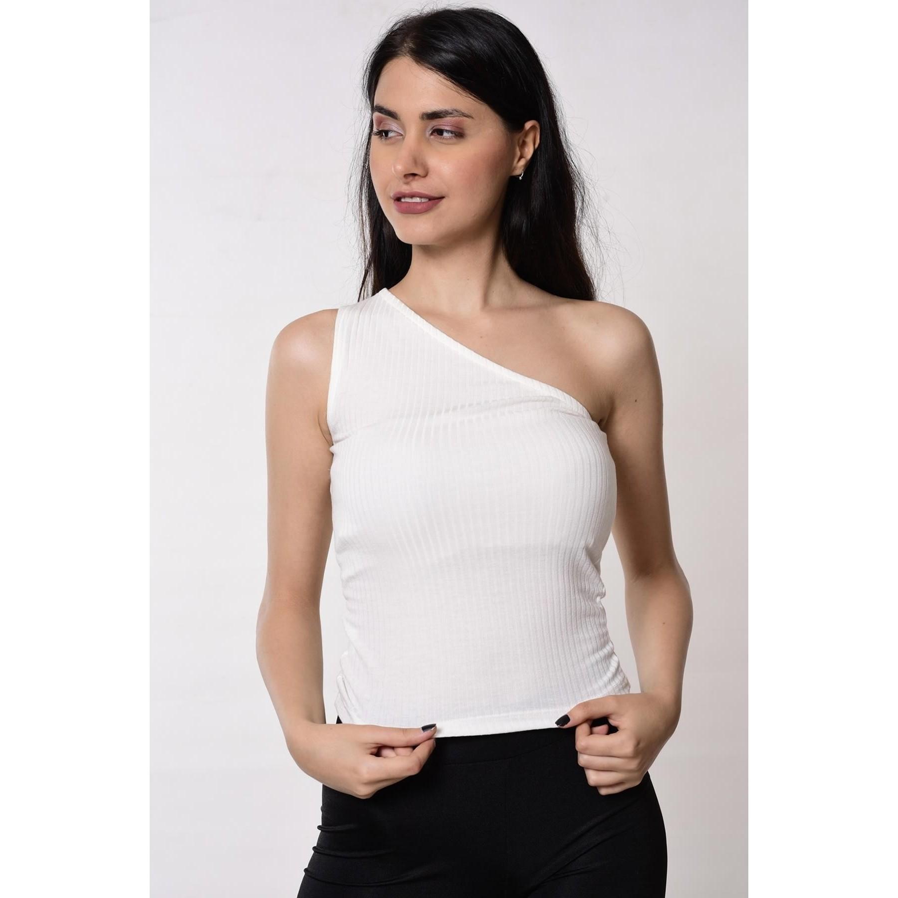Блузка цвета экрю на одно плечо с деталями M экрю