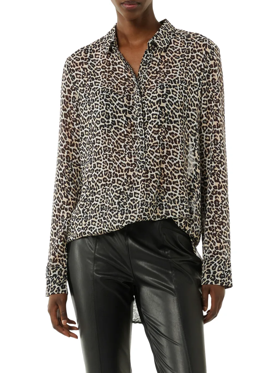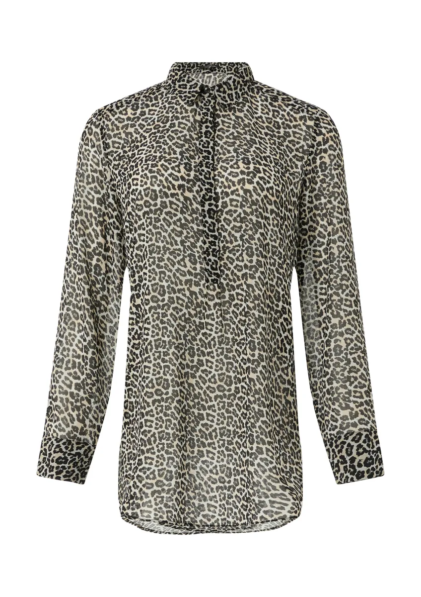 Блузка Comma с длинными рукавами и анималистическим принтом, коричневый